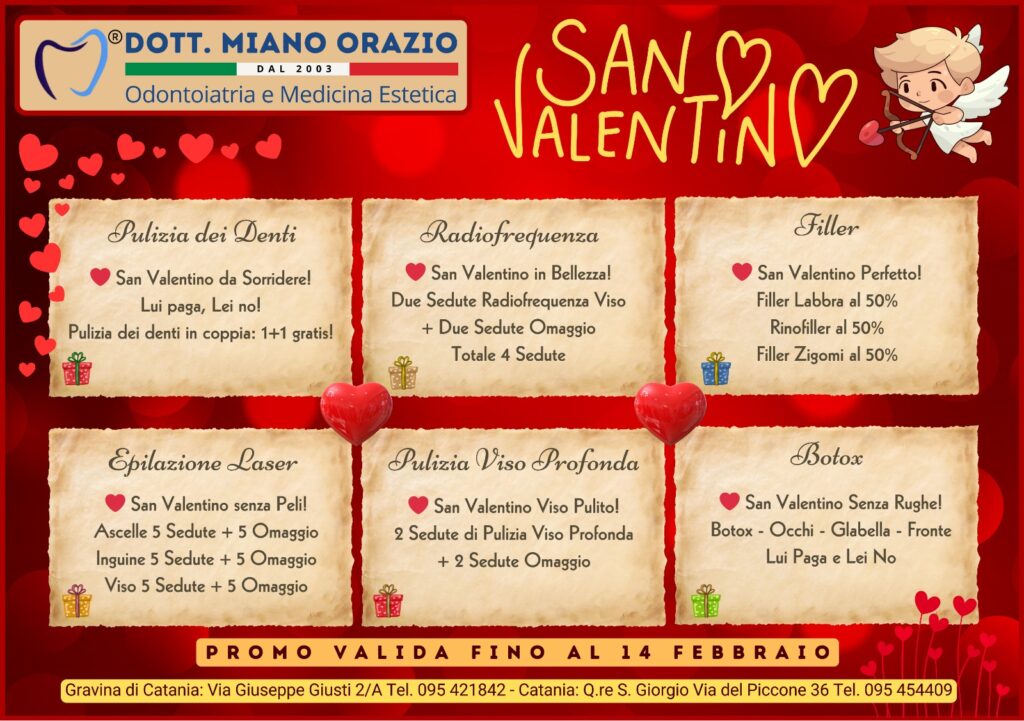 Lo studio del Dr. Orazio Miano è uno studio medico odontoiatrico specializzato con duplice sede: a Catania e a Gravina di Catania. Il dottore riceve previo appuntamento presso i due studi dentistici in giorni e orari di ricevimento prefissati (per maggiori informazioni, consultate la pagina dei contatti di questo sito). Le aree di intervento odontoiatriche principali contemplate dallo studio sono: implantologia, ortodonzia, protesi, conservativa, endodonzia, odontoiatria pediatrica (pedodonzia), chirurgia orale, igiene e profilassi, laser terapia, cosmesi dentale, radiologia dentale.